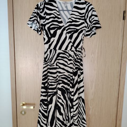 Mustavalkoinen trikoomekko. Mukava materiaali, laskeutuu kauniisti. Ehjä ja tahraton. Koko S. Eläimetön ja savuton talous.