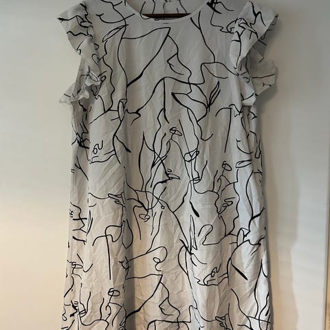 Kuvanmukainen mekko myynnissä. b youg -merkkinen. Vyötäröllä kiristysnauha ja taskut on. Kai-kai 65cm, o-h 105cm, kangas ei veny 100% viskoosia, erittäin kevyt ja ilmava, uusi, vain sovitettu. kokolappussa 42