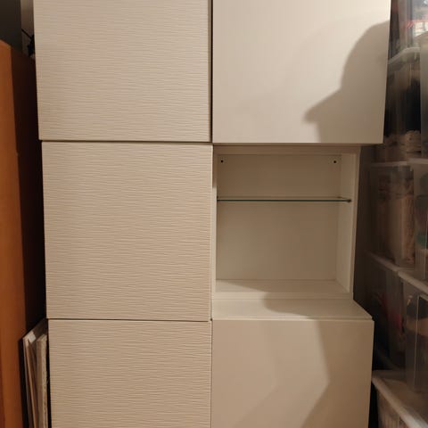 IKEA valkoinen kaappi. Kapea, korkea säilytyskaappi, jossa on yksi ovi ja metalliset vetimet. Sopii esimerkiksi eteiseen, makuuhuoneeseen tai kodinhoitotilaan vaatteiden, kenkien tai muun kodin tavaran säilytykseen. Neutraali valkoinen väri sulautuu useimpiin sisustuksiin.