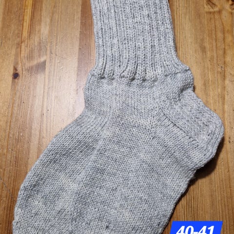 Käsityönä tehdyt villasukat koko 38-39 pohjanpituus 24cm.Varren pituus kantapäästä mitattuna 27cm.Kotilulta Tuokio lankaa 75% villaa 15% polyamidia.