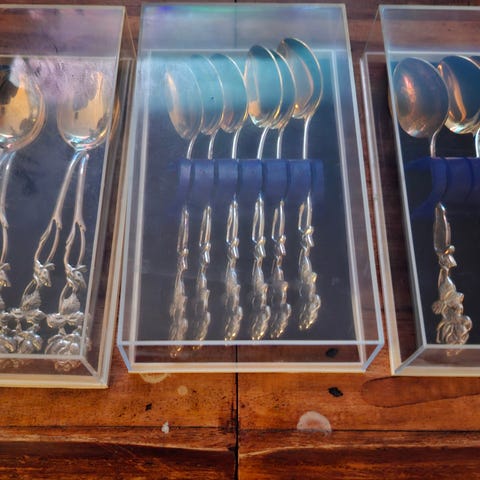Alpakka pikkulusikoita/palkintolusikoita, 7 kpl, yksi lusikoista pienempi.