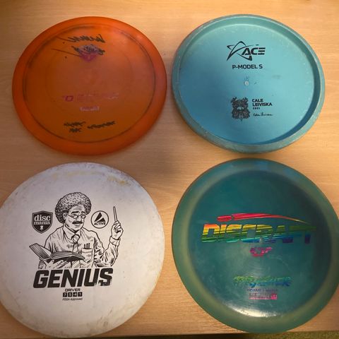 Läjä hyväkuntoisia kiekkoja eri valmistajilta. Useimmat näistä uudenveroisia ja testiheitetty vain pari kertaa. Suurimmassa osassa myös harmillisesti meikäläisen nimi ja numero rimmiin merkattuna. Lähes kaikki kiekot painoltaan 173g-175g.