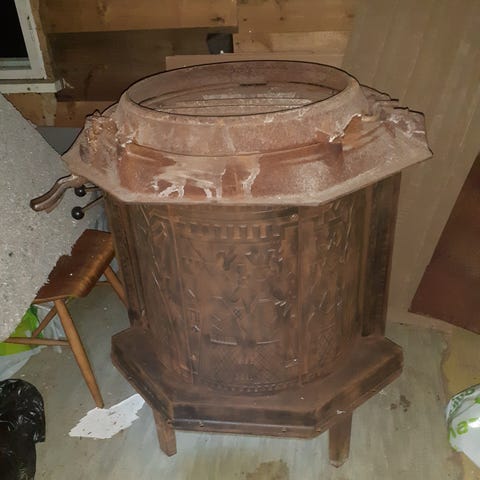 Takan palopesän yläpuolen keraaminen kevytkivi halki. Pysyy kyllä paikallaan ja ei haittaa takan toimintaa mitenkään. Siihen voi seuraava omistaja leikata uuden jos näkee tarvetta.