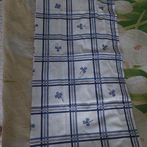 Pitkä kappaverho, pituus 240 cm, korkeus 55 cm, 100% polyesteriä, kaunis kukkakuviointi