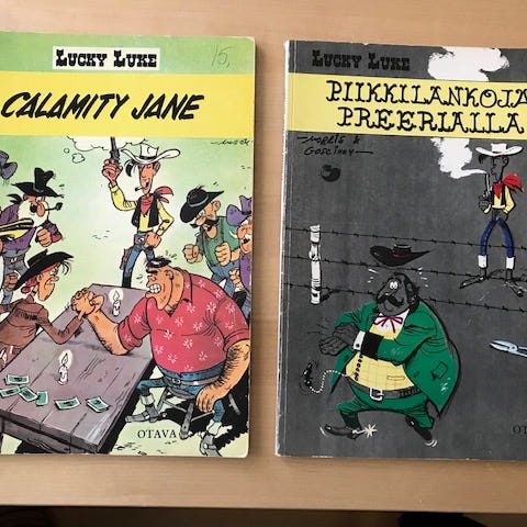Lucky Luke Piikkilankoja preerialla 1974 1. painos