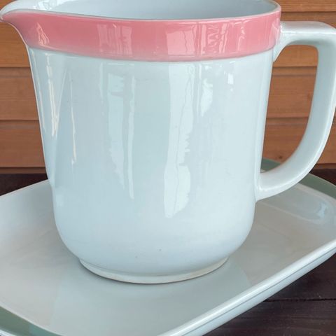 Arabia seita maitokannu. Design Raija Uosikkinen koriste, Bäck Göran malli 1961-1969-luvulta, korkeus 14cm. Kannun sisäosassa jotain pinttynyttä. Kannun pinnassa pieni ns. Ryppy mutta siinä emali pinnassa joten kuuluu ollakin.