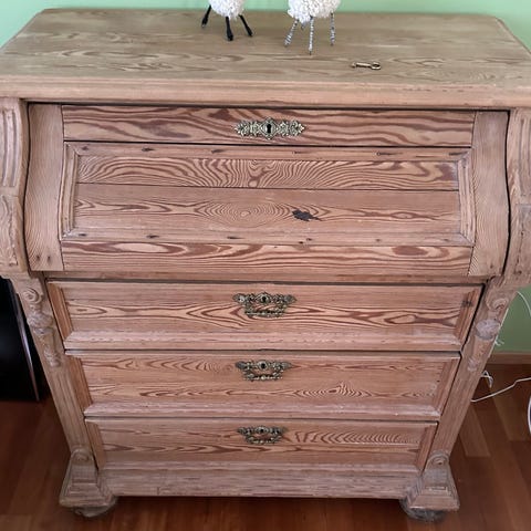Reproduction of an Antique mid century Swedish chest of drawers , three large drawers, brass handles, Bombe commode / Swedish Rococo / 19th 20 th century reproduction