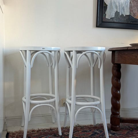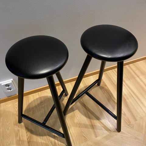 Myydään 2 kpl Nikarin Perch baarijakkaroita, 63 cm. Kummassakin jakkarassa kuvanmukainen jälki. Ostettu uutena 2023 Vepsäläiseltä.