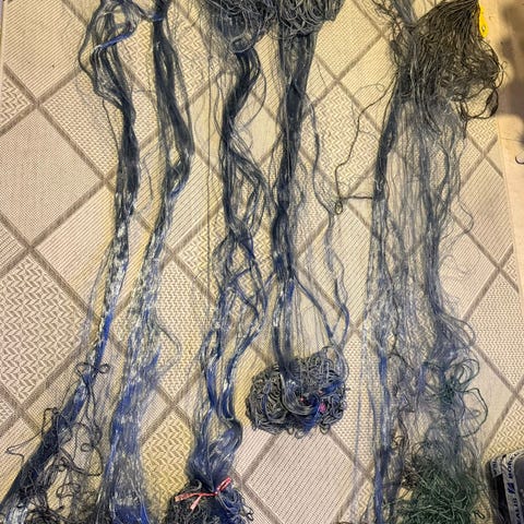 Iso laatikko kalastusverkkoa jonka verkon väli n. 7,2 cm * 7,2 cm. Verkkoa on useampi metri, arviolta verkkoja on 4 kpl, leveys n. 7 metriä ja korkeus 2,5 m. Arvio voi heittää molempiin suuntiin.