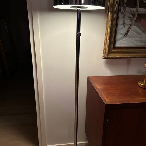 Design House Stockholmin Cord-lattiavalaisin. Väri musta, himmennettävä opaali led-valonlähde. Korkeus 130 cm ja jalustan halkaisija 38 cm.