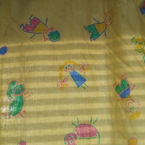 Myyn kirkkaankeltaisen päällyslakanan johon olen itse virkannut leveän kauniin välipitsin. Lakana on 70- luvulta. Siisti ja tuoksuton, säilytetty liinavaatekaapissa. Hinta 6 euroa. Säynätsalossa