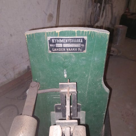 Kuvan mukainen kymmenysvaaka ja 5 punnusta.
