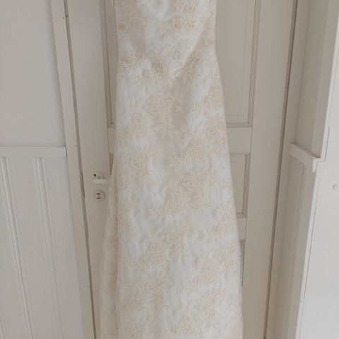 Myydään pesulassa pesty, 166 cm pitkälle lyhennetty häämekko. Helmassa pientä tahraa.