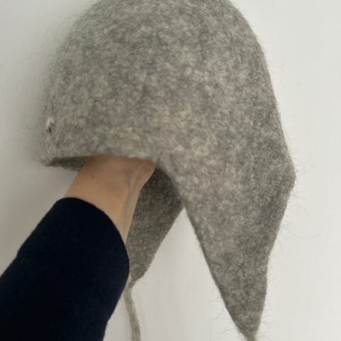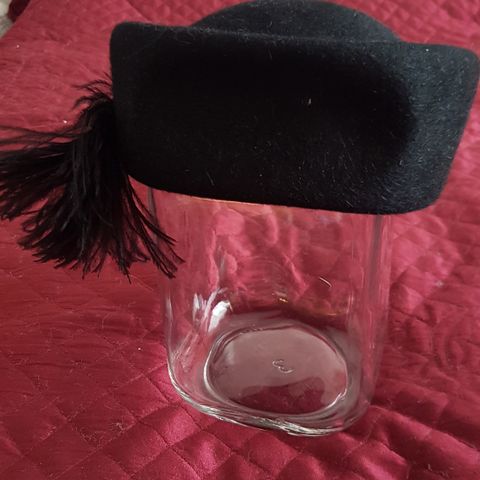 Naisten ruskea villahattu violettiraidallisella nauhalla
