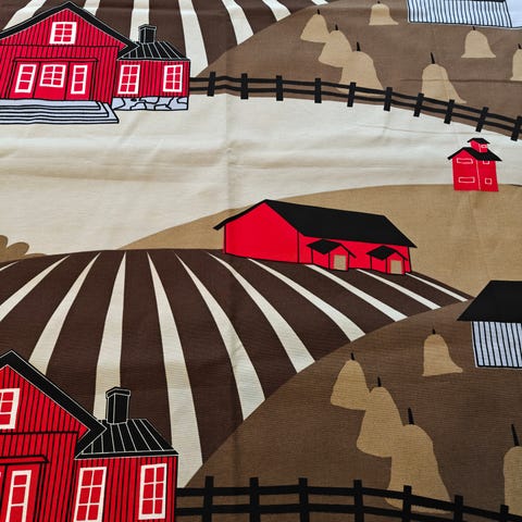 13 m jaettuna viidellä on 2,6 metriä eli tästä saa useimpaan tilaan esim. 5 verhoa. Toki sopii myös pöytäliinaksi yms, tyylikäs ja arvokkaan näköinen kangas. Kyseistä kangasta ei enää valmisteta.