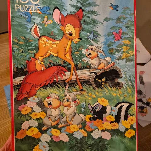 Kaksi hyvin vanhaa lasten palapeliä. Ovat kuitenkin vielä hyväkuntoisia ja ihan valmiita käyttöön tai sitten keräilijälle. Bambi palapelissä yhdessä palassa hiukan vikaa Bambin takajalan kohdalla, mutta sekin on ihan ryhdissään pysyvä pala.