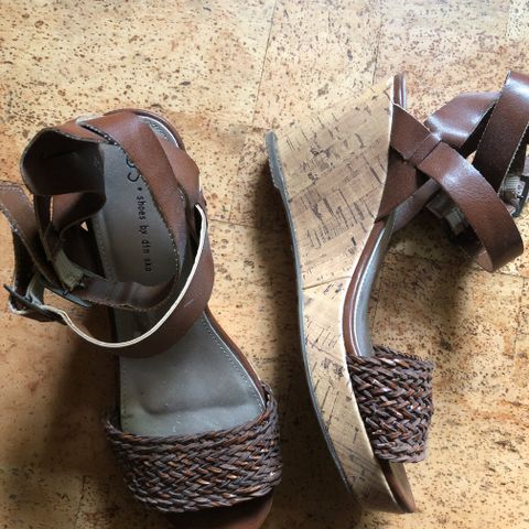 Käyttämättömät korkosandaalit. Koko 39. Sisäpohjan pituus 25,4cm. Koron korkeus n. 6,5cm (koron alapohjasta sisäpohjan yläpintaan).