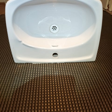 Uusi keraaminen pesuallas jäänyt ylimääräiseksi.