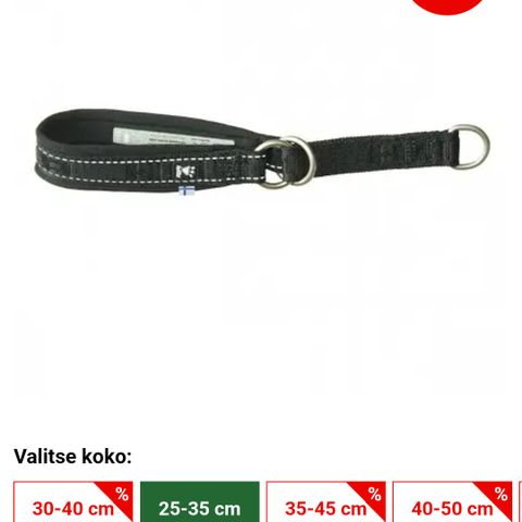 Koko M, leveys 2cm, pituus 35-45cm. Feel Active Padded slip, musta puolikuristava panta