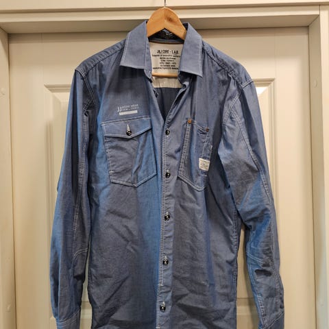 Core by Jack & Jones merkkinen kauluspaita, kokoa M. Vain pari kertaa käytetty, erittäin siisti kunto. Näyttää vähän farkkumaiselta, mutta on suht ohut (materiaali puuvilla).