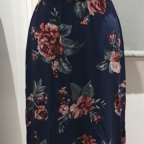 Only -merkkinen kukkamekko mustalla pohjavärillä. Kangas hiukan rypytettyä.