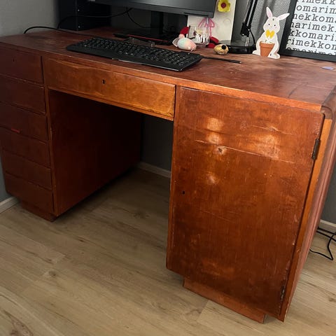 Retro toimistopöytä ja laatikostot 70v
