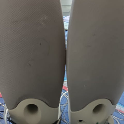 ACME-merkkiset, mustat, siistit, toimivat ja kevyet (yhden paino n. 140 gr) tietokoneen kovaääniset. Korkeus 18 cm, leveys 9 cm, pohja/jalusta n. 6 cm x 8,2 cm.