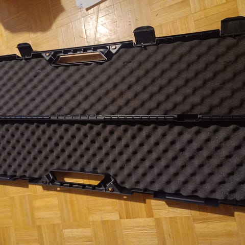 Vanerinen tukeva aselaukku sisämitta 122cm. Sisälle mahtuu Sakon Target pötkylä päässä tai joku muu lyijynheittoväline. Ei nitku ei natku ja pysyy tiukasti salvoillaan kiinni.