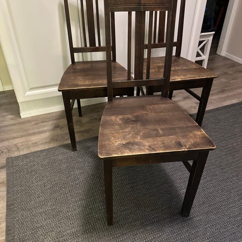 Myydään vanhat puutuolit 2 kpl. Kunto kohtalainen. Vasemman puoleinen ehkä hieman kiikkerä. Yksittäin ostettuna 30e/kpl, yhdessä ostettuna yhteensä 50e.