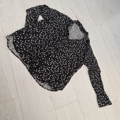 Myydään muvan mukainen naisten pusero. Kunto kuin uusi. Kietaisuleikkaus edessä. Merkki Happy Holly. Joustavaa materiaalia.