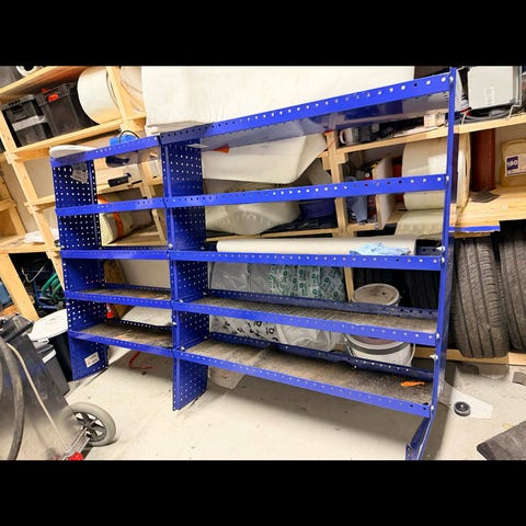 Hyvässä kunnossa oleva avohylly pakettiautoon. Purettu toyota hiace (pitkä malli). Mittoja on kahta mallia 3kpl leveämpiä + leveä ylähylly (36cm)ja 3kpl kapeampia hyllyjä (26cm) kokonaisuudessaan pituus 225cm ja korkeus n.115cm. Todella jämäkkä ja kestää hyvin kulutusta.