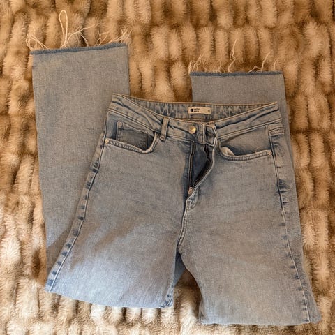 Myydään erittäin hyväkuntoiset vain pari kertaa jalassa olleet divided farkut, koko 38. Etu- ja takataskut, vyönlenkit, kangas joustaa vähän.