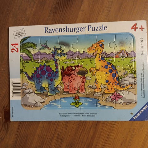 4 kpl Kunnon dinosaurus -palapelejä, eri määrä paloja: 12, 16, 20 ja 24 kpl. Kaikki palat tallella. Yhdestä palasta puuttuu pieni osa, kts lisäkuva. Muuten hyväkuntoinen. Nouto tai postitus. Katso myös muut ilmoitukseni.