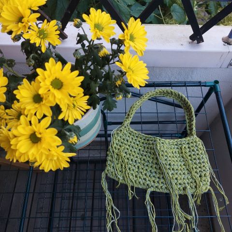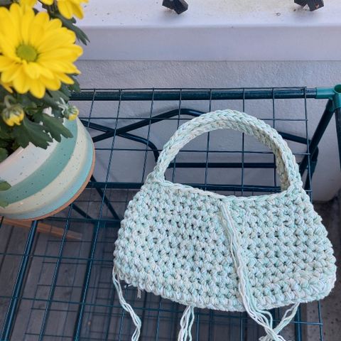 Käsilaukku, ei käytetty, kaunis kuviointi, virkattu, suljettavissa vetoketjulla