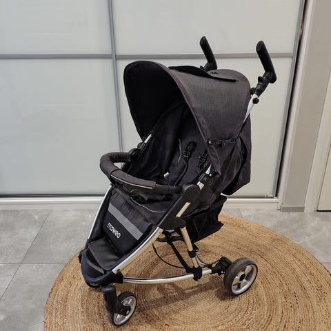 Siistit, ehjät moweo matkarattaat. Selkänojan saa laskettua ja nostettua, valjaat, turvakaaren saa irti.
