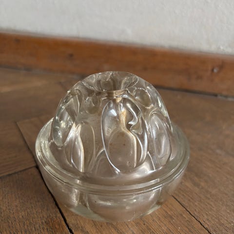 Riihimäen lasin kukkamaljakon pohjalle asetettava kukkapidike. 19 reikää.