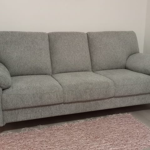 Myydään laadukas sohva. Ollut käytössä puolitoista vuotta. Kulutusta kestävä samettimainen kangas, todella hyvässä kunnossa. Korkeat jalat, mahtuu imuroimaan alta. Napakka sohva, ei tyynyjä, pysyy kuosissaan. Leveys 280, syvyys 80 cm, paitsi divaanin kohdalta 135cm.