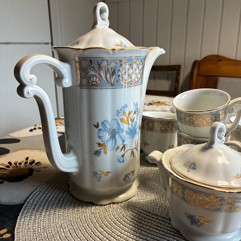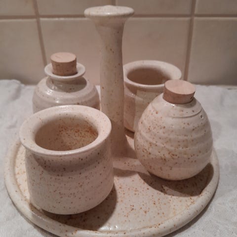 Lisäksi hienosokeriastia, joka on ollut säännöllisessä käytössä ja siksi tarra kulunut.