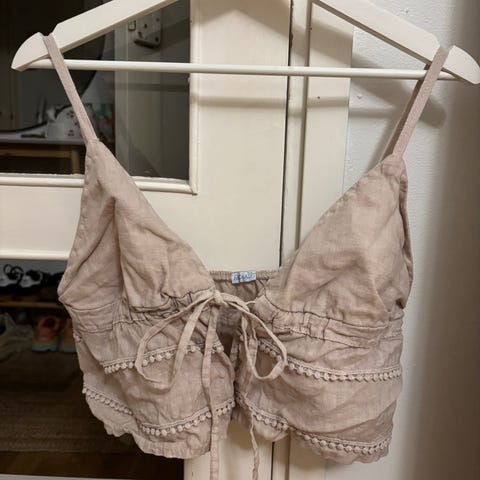 Kirkkaanpunainen Cubus pellavatoppi kokoa S, kauluksessa kuminauha, joten hihat voi laskea ja avata olkapäät.
