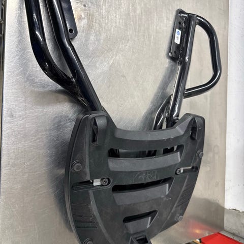Tuollainen givin laukkuteline ja kiinnitysraudat joutilaana. Ollut kiinni hondan nc700.