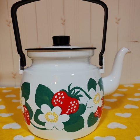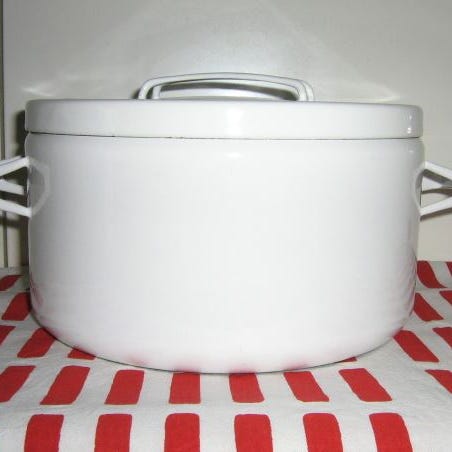 Arabia Finel Seppo Mallatin suunnittelema 5 l:n kattila. Kannessa kolhu