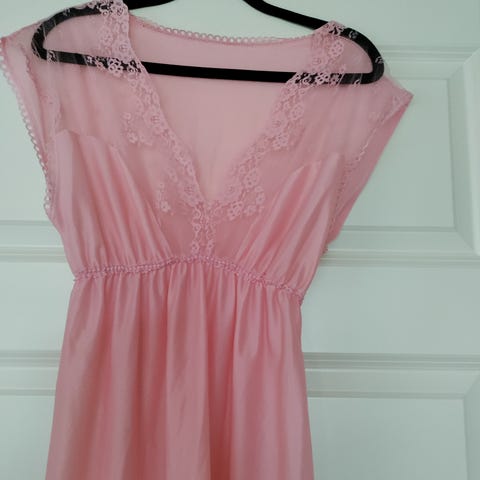 Persikan värinen alusmekko . Kokolapussa lukee 40 mutta vastaa enemmän 36/38 kokoa. Pituus 78cm ja Kainalo-Kainalo 37cm. Materiaali tiedot puuttuvat.