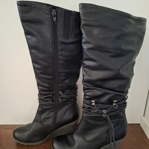 Mustat n. 40cm saapikastuet. 5€/pari löytyy muutamia pareja
