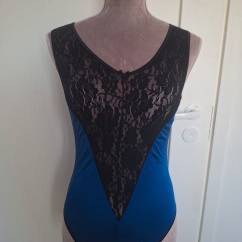 Punamusta pitsibody. Kokolapussa lukee 85C. Pituus 67cm ja Kainalo-Kainalo 37cm. 100 polyamidi