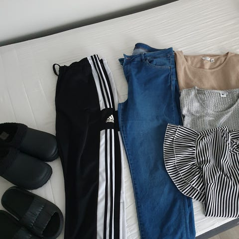 Myyn kuvanmukaisen vaatepaketin naiselle koko 40. 3kpl neulepuseroita, vaaleanpunainen uusi aluspaita, valkoinen kuviollinen flanelli yöpaita, sininen kevyt takki Ovat suhteellisen hyväkuntoisia, jonkin verran esiintyy käytön jälkiä mutta ei ne isommin haittaa. Hinnan lisäksi postikulut tai nouto Ruoveden keskustasta.