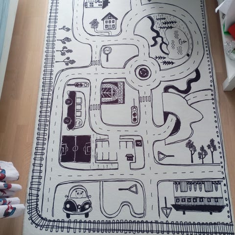 Siiisti kuntoinen, muutama haalea vihreä värikynän jälki. Näkyy jälkimmäisessä kuvassa. Koko 150cmx100cm