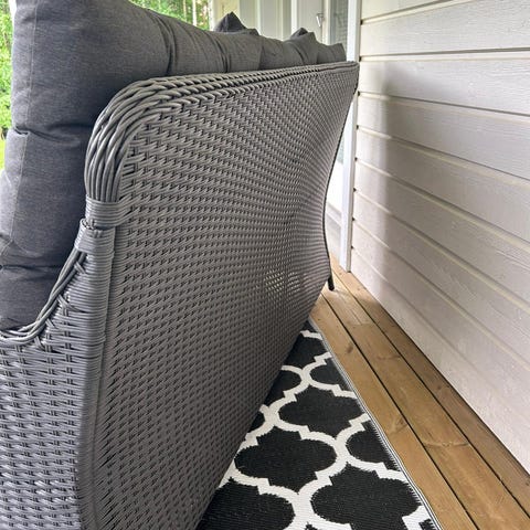 Upea Brafab Weldon kulmasohva. Leveys 226x226, syvyys 82cm. Khakin värinen alumiinirunko, beige säänkestävät verhoilut. Uusi