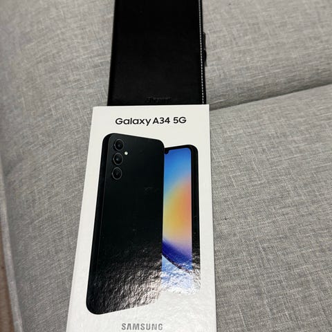 Motorola moto g34 älypuhelin, 5G-yhteydellä, musta väri. Laite on varustettu useilla kameroilla ja modernilla käyttöjärjestelmällä. Mukana alkuperäinen pakkaus ja osto kuitti. Muistimäärä ei ole tarkasti määritelty.