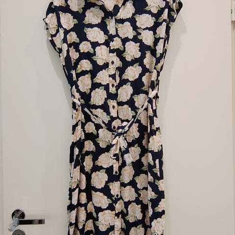 Pari kertaa käytetty mekko , solmimisnauha puuttuu vyötäröltä. 100 % ecovero viskoosia. Savuton, lemmikitön koti.