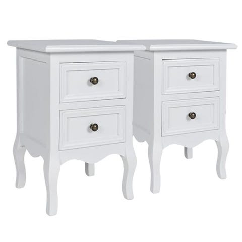 Tässä kahden vintagetyylisen yöpöydän sarjassa on tilavat vetolaatikot, jotta voit pitää tärkeät tavarat käden ulottuvilla.